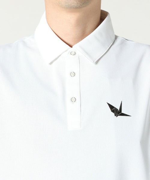 【デザイン】 バックに大きくプリントされた1PIU1UGUALE3(ウノピゥウノウグァーレトレ)のロゴテープデザインが特徴的なショートスリーブのポロシャツ。胸元にはブランドアイコンの折り鶴がデザインされています。シンプルながら素材の良さが光る1着です。