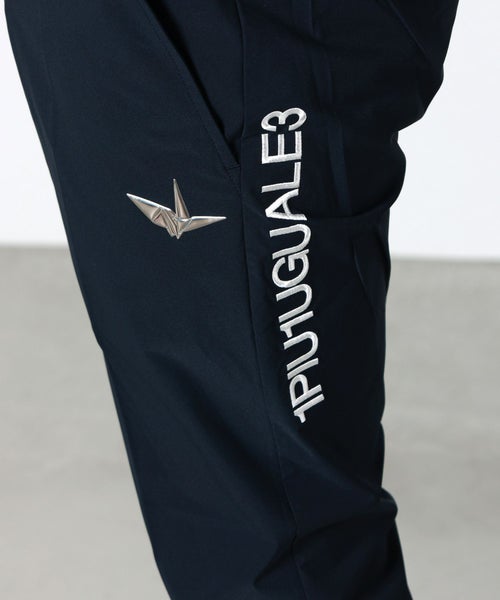 【デザイン】 1PIU1UGUALE3(ウノ ピゥ ウノ ウグァーレ トレ)のパンツ。 裾がリブ仕様になったテーパードパンツです。 左ウエスト部分にはブランドアイコンである折り鶴のパッチが施され、右足側面部分には1PIU1UGUALE3(ウノ ピゥ ウノ ウグァーレ トレ)のロゴが配されています。