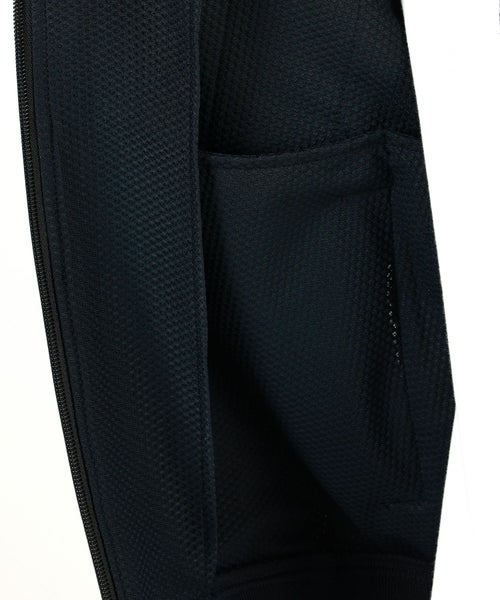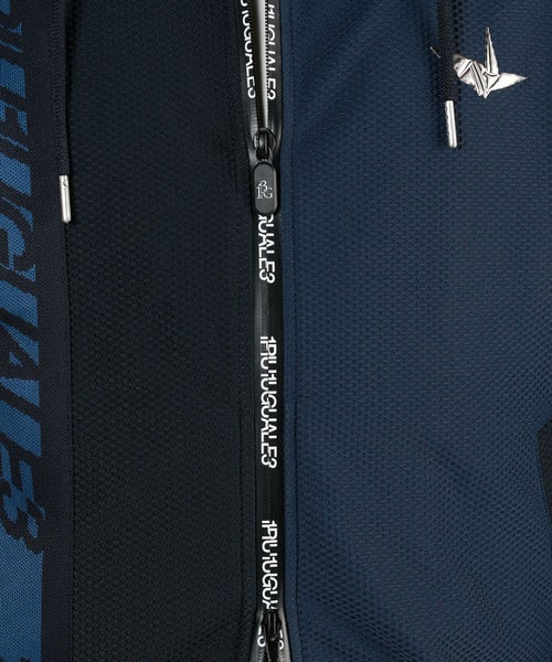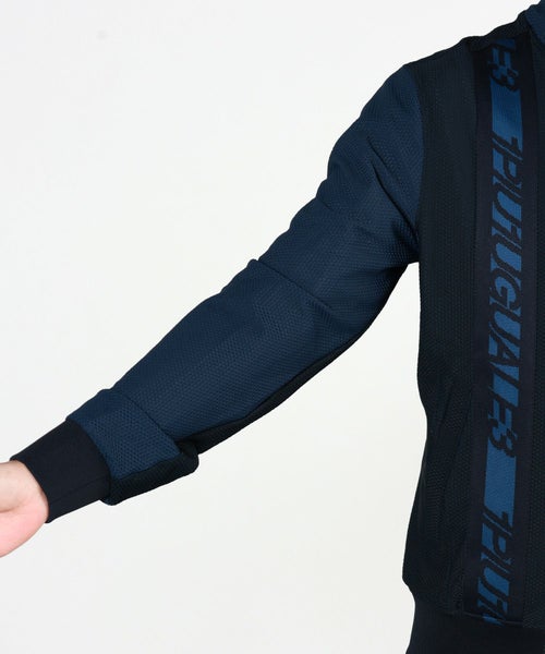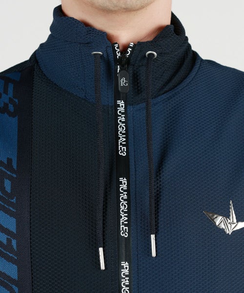 【デザイン】 1PIU1UGUALE3(ウノ ピゥ ウノ ウグァーレ トレ)のゴルフラインのジップアップパーカ。ジャガードのロゴテープを身頃に施しアクセントとしたキャッチーなデザイン。左右モノトーンの切り替えも存在感抜群です。見た目にも涼しげで、春夏シーズンのラウンド最適。また、しわになりにくい素材のため、コンパクトにして持ち運びもしやすいアイテムです。