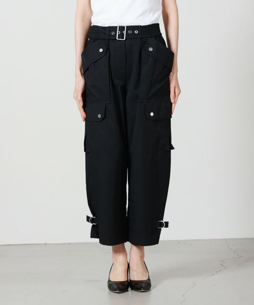 【デザイン】3.1 Phillip Lim(スリーワン フィリップリム)のパンツ。日常の気楽さをモダンに再構築し、実用性を備えながらも都会的で洗練された印象に仕上げています。クロップド丈のリラックスシルエットに、オーバーサイズのフラップポケットを配し、バックル付きの調節可能なタブや、Dリングで開閉するギャザーウエストがアクセントとなり、機能的でありながらデザイン性の高い一本に。カジュアルなオフスタイルから、きれいめなトップスを合わせたフォーマル寄りのコーディネートまで、幅広く活躍するアイテムです。