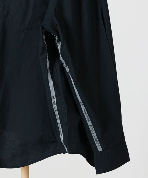 【デザイン】Acne Studios(アクネストゥディオズ)のシャツ。 軽量なコットンポプリンを用いた、クリーンで洗練されたボタンアップシャツです。全体はヒップ下まで届くリラックスフィットで、身体のラインを拾いすぎず、自然な余白を楽しめるシルエット。袖の内側にさりげなく配されたジャカードロゴのストライプが、ミニマルな佇まいの中にブランドらしい遊び心を添えています。胸元には実用性の高いポケットを配置し、日常使いにも配慮されたデザイン。1枚で着ても、ジャケットやニットのインナーとしてもバランスが取りやすく、オン・オフ問わず活理解できる汎用性の高さが魅力です。