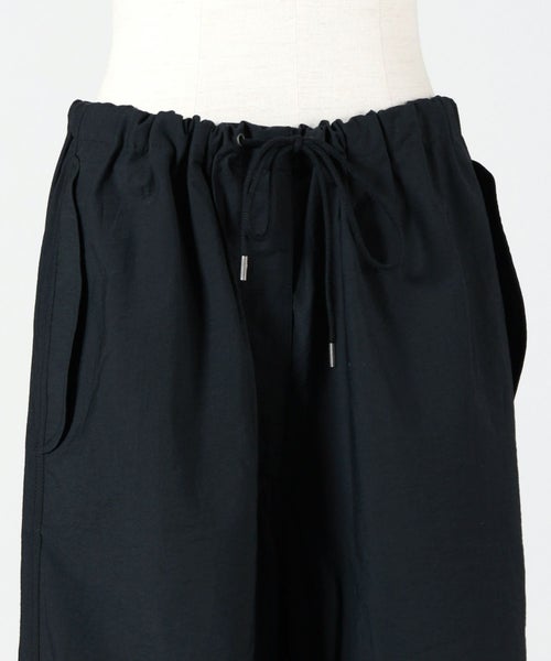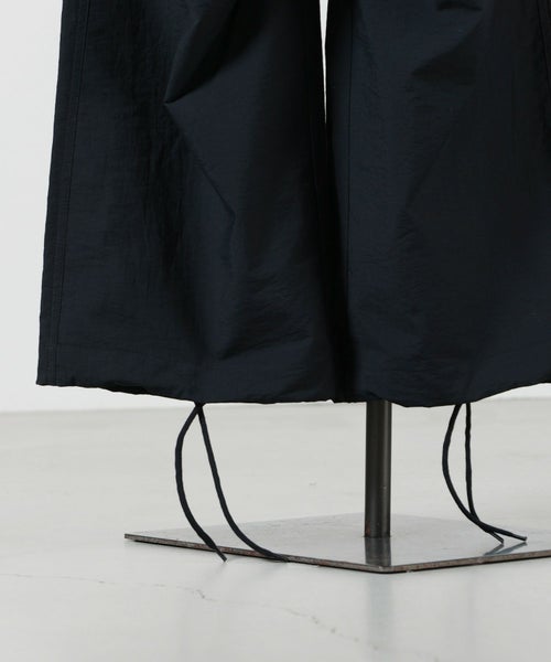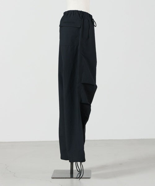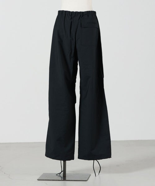 【デザイン】Acne Studios(アクネストゥディオズ)のパンツ。ソフトなシワ加工仕上げのコットンブレンド素材を使用。ウエストバンドに伸縮性のあるドローコードがあしらわれたデザイン。バックポケットにAcne Studiosロゴの刺繍入り。ミッドウエスウエスト、バギーレッグ、裾に調節可能なドローコードが付いた長めの丈、リラックスフィットスタイル。