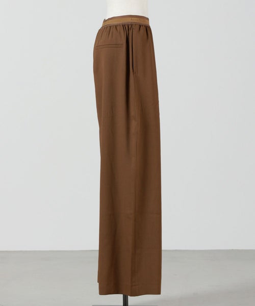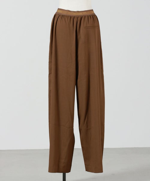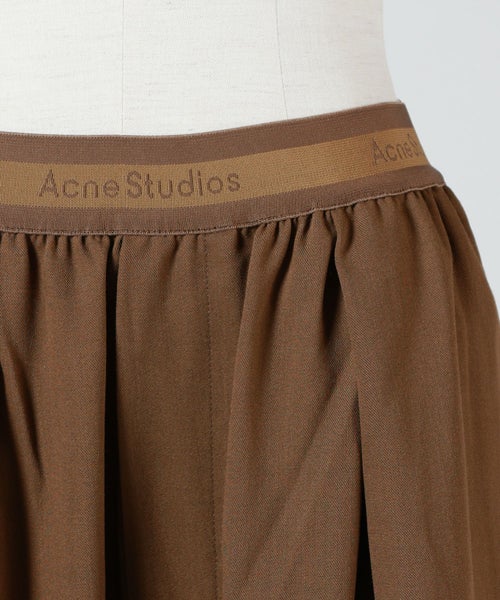 【デザイン】Acne Studios(アクネストゥディオズ)のパンツ。ドレープ感のあるウール混のツイル生地を使用。Acne Studiosのロゴテープをあしらった伸縮性ウエストバンドのディテールがポイントです。ミドルウエスト、ワイドレッグ、ロング丈のリラックスフィットスタイル。