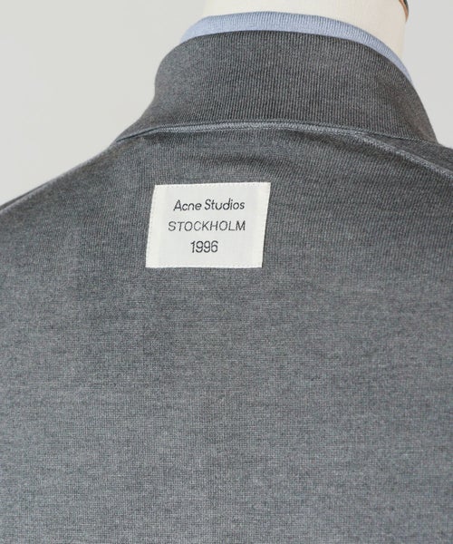 【デザイン】Acne Studios(アクネ ストゥディオズ)のニット。クラシックなポロシャツデザインをベースに、ブランドらしいモダンなひねりを加えた一着。コントラスト配色のシャツカラーが程よいアクセントとなり、ミニマルながらも印象的なスタイルに仕上げられています。ヒップにかかる丈感とリラックスしたフィット感が、抜け感のあるこなれた表情を演出。背中にはさりげなくブランドロゴパッチが施され、細部にまでこだわりを感じさせます。合わせるボトムスを選ばない万能なデザインで、デニムでカジュアルに、スラックスでシックにと、幅広いコーディネートに活躍します。