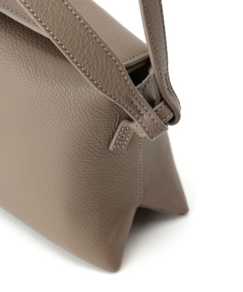 【デザイン】 AESTHER EKME(エスターエクミ)のショルダーバッグ。アシンメトリーなデザインが特徴的なアイテム。ミニマルながらも個性を感じさせるデザインは幅広いシーンで活躍してくれます。トップはマグネット式なので、開閉が簡単で中身も見えづらくなっています。コンパクトなルックスながらもマチが広めなので、収納力があり、機能性も兼ね備えています。トップハンドルと長さ調節が可能なクロスボディストラップが付属。