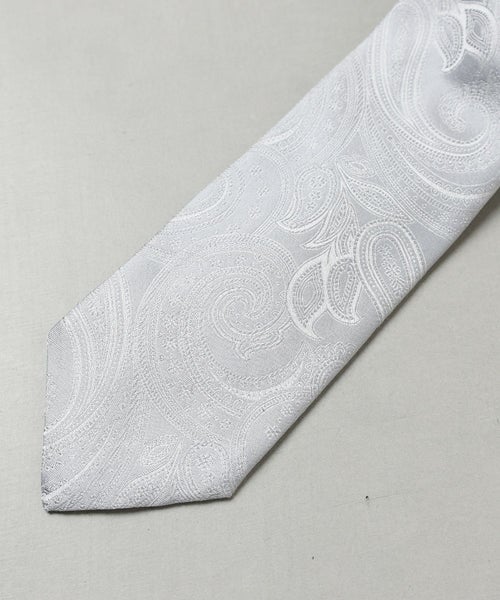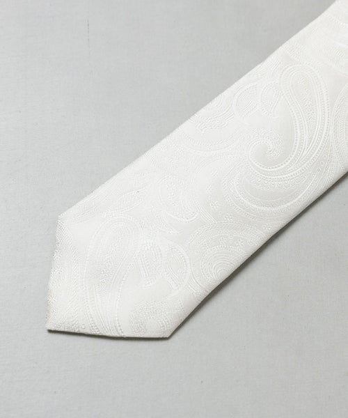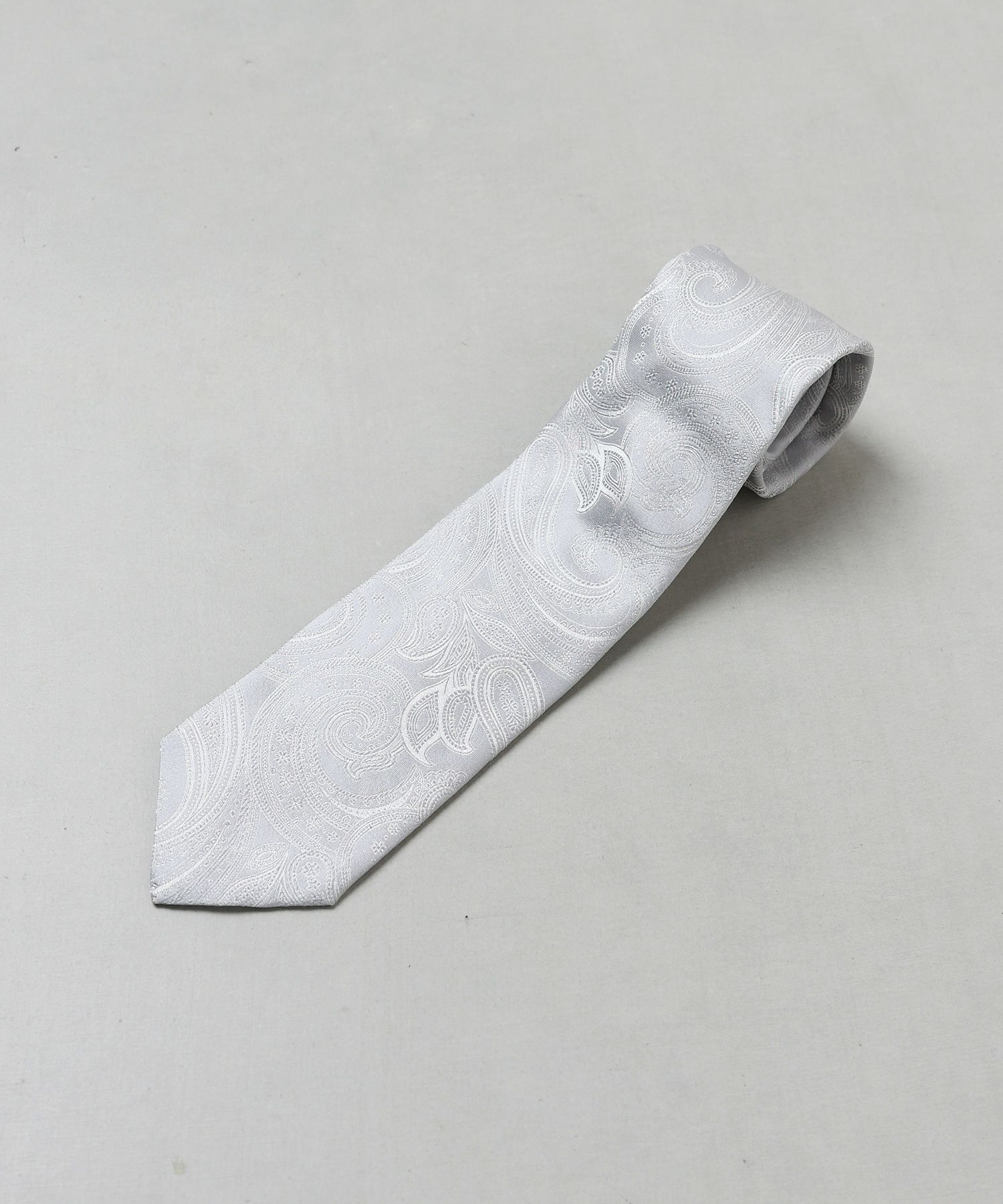 【デザイン】 シルク100%のネクタイ。同色で施されたペイズリーの刺繍がデザインアクセントです。