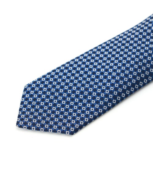 【デザイン】 Altea(アルテア)のネクタイ。スクエア柄が散りばめられた細やかな柄は程良くコーディネートのアクセントに。シルクの光沢が美しい一本です。