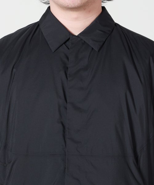 【デザイン】ARC'TERYX VEILANCE(アークテリクス ヴェイランス)のジャケット。シャツカラーを採用したミニマルなデザインに、軽量インサレーションの機能性を融合した一着です。フロントは隠しファスナー仕様で、無駄のないクリーンな印象に。首元のスナップボタンやウエストの調節機能により、シルエットのアレンジも可能です。すっきりとしたラインでありながら程よいゆとりを持たせており、インナーを選ばず幅広いスタイリングに対応。パッカブル仕様でコンパクトに収納できるため、持ち運びにも便利で旅行や出張時にも重宝します。