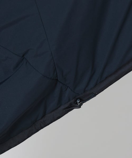 【素材】 本体には超軽量のナイロンリップストップ素材を使用し、さらりとした滑らかなタッチと軽やかな着心地が特徴。中わたにはポリエステルを採用し、見た目以上の保温性を確保しながらもボリュームを抑えたスマートな仕上がりです。適度なハリ感とマットな質感が、都会的で洗練された印象を演出。裏地にはストレッチ性を持たせることで、動きやすさと快適なフィット感を実現しています。非常に軽量な分、真冬の防寒にはやや物足りなさがあるため、インナーやアウターとのレイヤードでの調整がおすすめです。