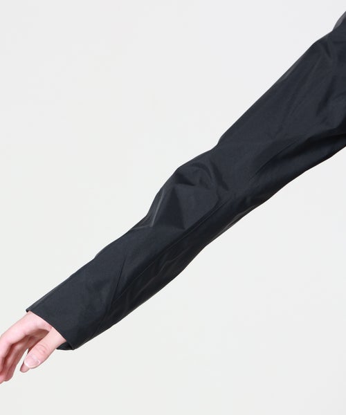 【素材】 ナイロン100%のGORE-TEX ePE素材を使用し、優れた防水性と防風性を実現。平織りならではの滑らかでややマットな質感は、テクニカルでありながらも都会的な印象を与えます。軽量でしなやかな生地感は、着用時のストレスを軽減し、長時間の着用でも快適。雨天時でも内部の蒸れを逃がす透湿性を備えており、ドライな着心地をキープします。