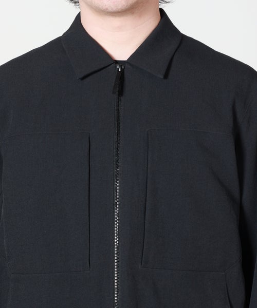 【素材】 ポリエステル100%のソフトシェル素材を使用し、軽やかでさらりとしたドライなタッチが特徴。通気性に優れているため蒸れにくく、長時間の着用でも快適な着心地が持続します。シワになりにくい特性により、着用時もきれいな状態を保ちやすいのもポイント。適度なストレッチ性があり、身体の動きにしなやかにフィットします。さらに軽い雨を弾く撥水性とほどよい保温性を備え、気温差のある季節にも対応。ややスポーティな質感のため、クリーンなボトムスと合わせることでバランスよく着こなせます。