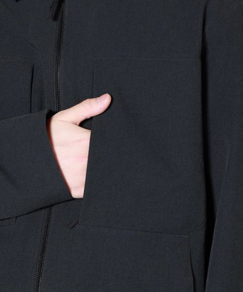 【デザイン】ARC'TERYX VEILANCE(アークテリクス ヴェイランス)のジャケット。シャツ感覚で軽やかに羽織れるオーバーシャツ型のデザインで、ミニマルかつ都会的な印象が魅力です。程よくゆとりのあるシルエットはレイヤードしやすく、カットソーやニットの上からもストレスなく着用可能。無駄を削ぎ落としたクリーンな表情で、カジュアルからきれいめまで幅広いスタイリングに自然に馴染みます。日常の移動や街歩きに最適な、機能美を備えた一着です。