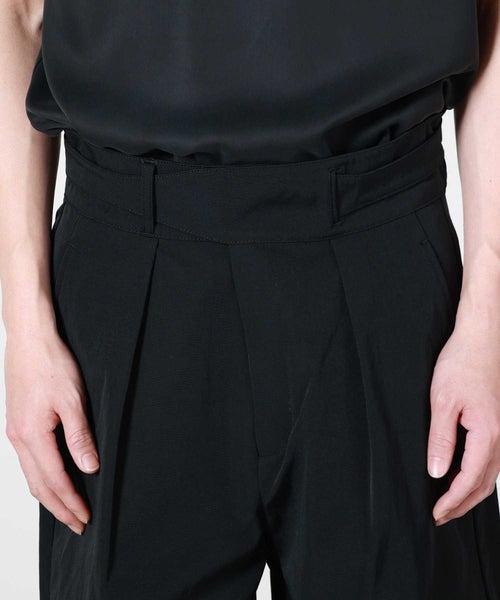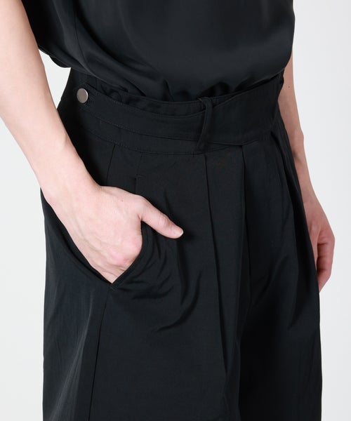 【デザイン】ATTACHMENT(アタッチメント)のショートパンツ。ミリタリー由来のディテールをベースに、現代的なバランスへと昇華させたグルカショートパンツです。ウエストには特徴的な持ち出しベルトを採用し、タックを入れることで立体感とクラシックな表情を演出しています。程よくゆとりのあるシルエットながら、腰回りはすっきりと見える設計で、ラフすぎず洗練された印象に。シンプルなトップスと合わせるだけでもスタイリングに奥行きが生まれ、カジュアルからきれいめまで幅広いコーディネートに対応する汎用性の高い一本です。