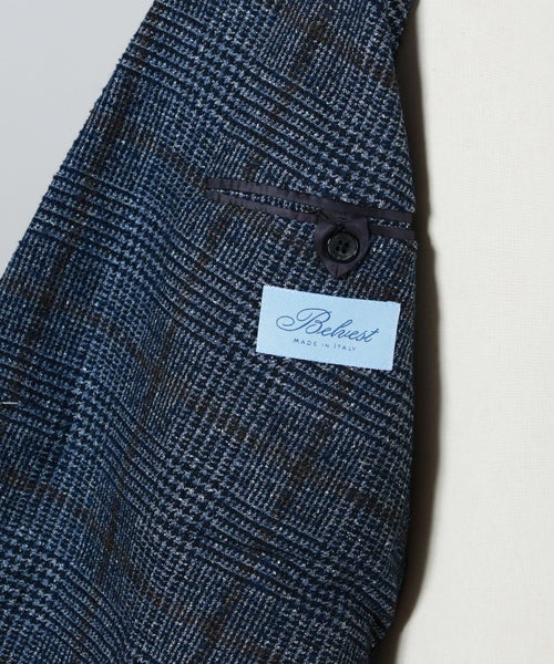 【デザイン】Belvest(ベルベスト)の「LIGHTWEIGHT 」。代名詞である「JACKET IN THE BOX」から派生した最も軽量なモデルです。 「JACKET IN THE BOX」とは、“畳んで箱に入れる”という文字通り、肩パッドや芯地を最小限に抑え、軽量な一枚仕立てのモデルのことです。「LIGHTWEIGHT 」はそこから更に肩パッドをなくして芯地も最小限にすることで付属の袋に収納出来るほどの軽量化を実現しています。裏地を極力排することにより、目に見える部分の縫製部分はパイピング処理をするなど、ブランドの美意識の高さが伺えます。 またシルエットも自然な丸みを帯びたものになっており、美しさと着心地の良さに繋がっています。