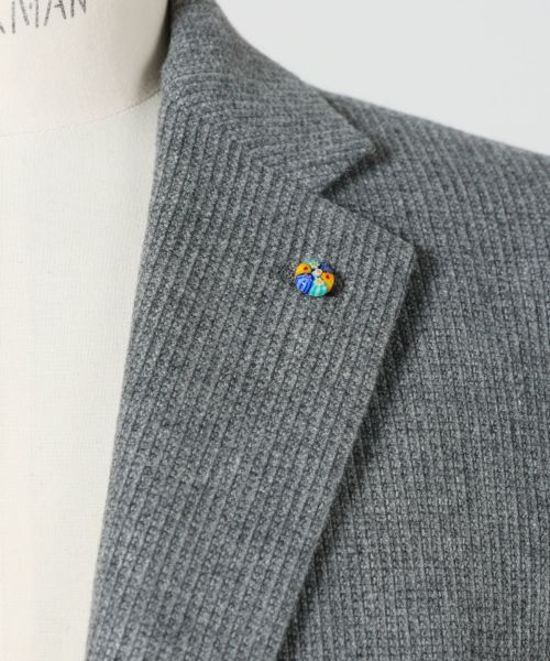 【素材】柔らかな肌触りが特徴のカシミア混ウールを使用。パッチポケットの上にはチェンジポケットを配し、ヤギ革で縁取られています。