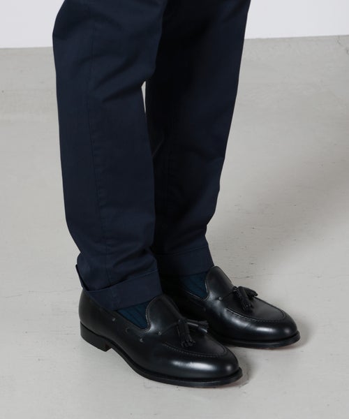【素材】 コットン97%、ポリウレタン3%の混紡素材を使用。肌触りが滑らかなコットン地で春夏秋の3シーズン着用可能です。伸縮性に優れており、動きやすさも兼ね備えています。リラックス感ときちんと感を同時に演出します。
