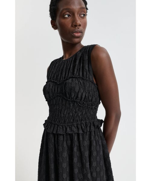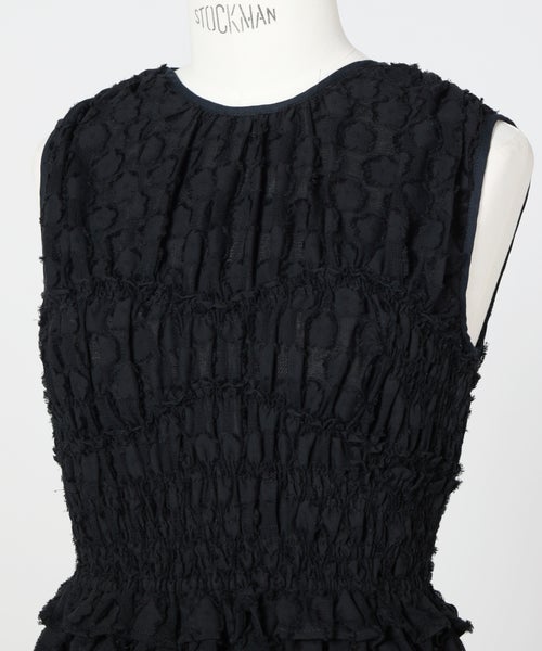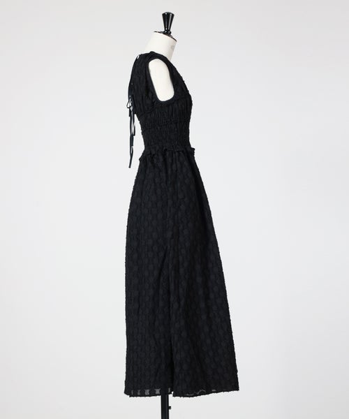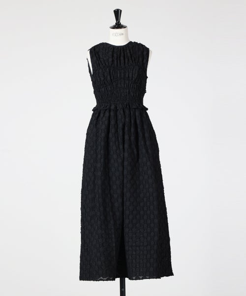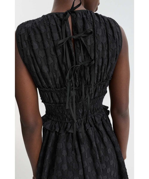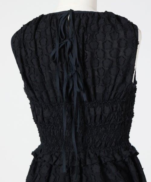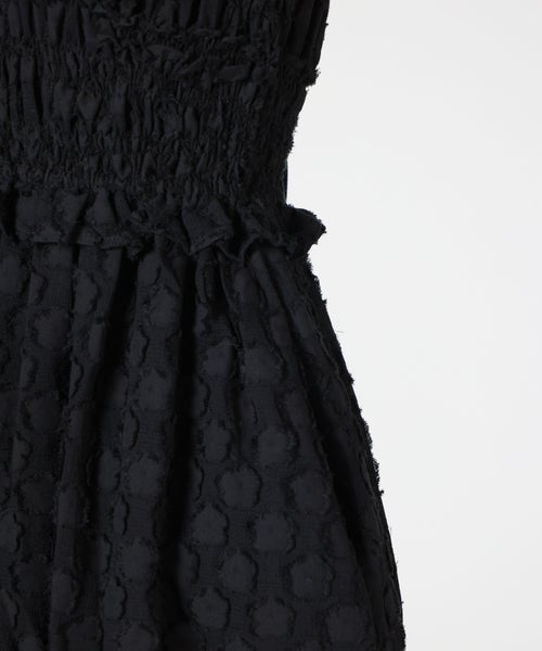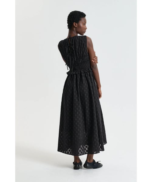 【デザイン】 Cecilie Bahnsen(セシリー バンセン)のドレス。繊細なフローラルモチーフを織りで表現した素材感が魅力のドレス。全体に立体的な花柄が浮かび上がることで奥行きのあるテクスチャーを生み出し、軽やかでありながら存在感のある仕上がりとなっています。程よく広がるボリュームシルエットが動きに合わせて優雅に揺れ、ブランドらしいロマンティックで構築的なフォルムを演出します。
