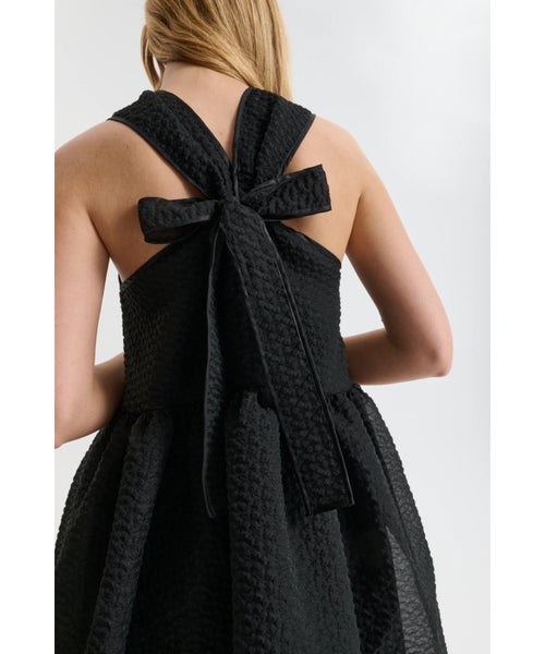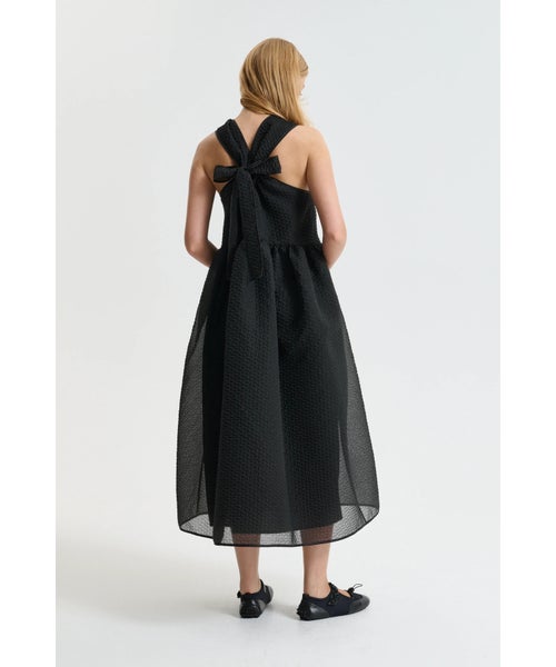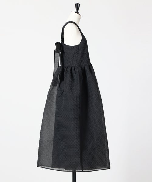【デザイン】Cecilie Bahnsen(セシリー バンセン)のワンピース。ブランドを代表する“ドーラドレス”は、ウエストからふんわりと広がるボリュームシルエットが特徴で、立体的かつドラマティックなフォルムが印象的な一着です。背中にはリボンディテールをあしらい、後ろ姿まで抜かりなく女性らしさを演出。ゆとりのあるシルエットで身体のラインを拾わず、軽やかに纏うだけで華やかなスタイルが完成します。存在感のあるデザインのため、足元はフラットシューズやシンプルなサンダルで抜け感を出すのがおすすめです。