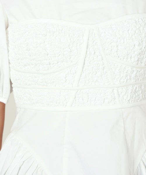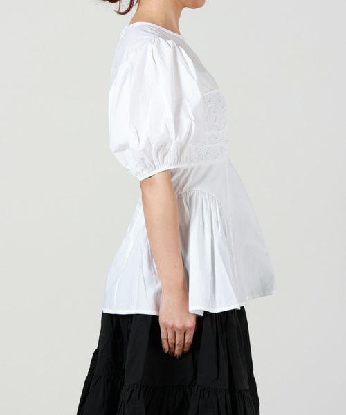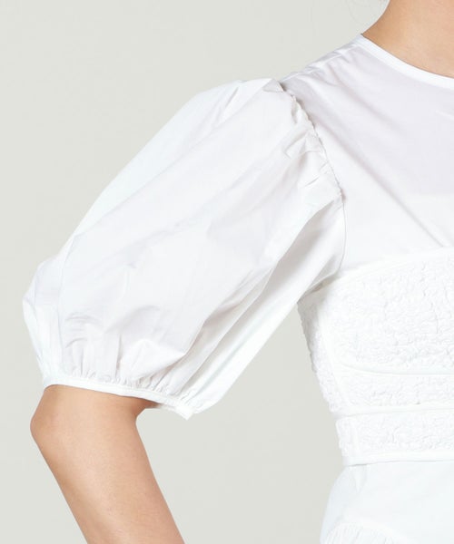 【デザイン】Cecilie Bahnsen(セシリー バンセン)のブラウス。 クチュール技術が織りなす立体的なシルエットが魅力の「Conner」トップです。身体に沿うスモッキングのビスチェ風ボディに、ギャザーをたっぷり寄せたヒップパネルが広がり、フェミニンなAラインを形成。ブランドを象徴するふっくらとしたパフスリーブが華やかさを添え、後ろ姿はジップ仕様で引き締めています。デニムと合わせてカジュアルダウンするのはもちろん、スラックスやスカートでドレスアップも楽しめる万能な一着です。