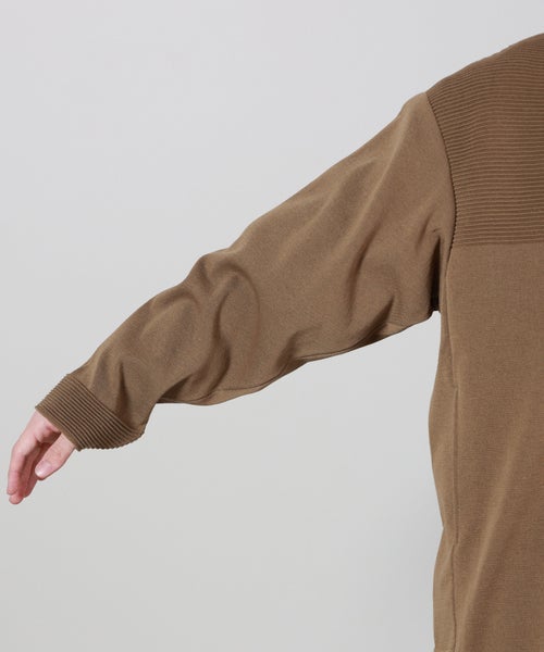 【素材】綿75%とポリエステル25%を使用。ミラノリブ特有のしっかりとした編み地で、手に取ると適度な厚みとハリを感じられます。コットンの自然な風合いに、ポリエステルの安定感が加わることで、軽やかさと扱いやすさを両立しています。さらりとした肌触りで通気性に優れ、快適な着心地です。
