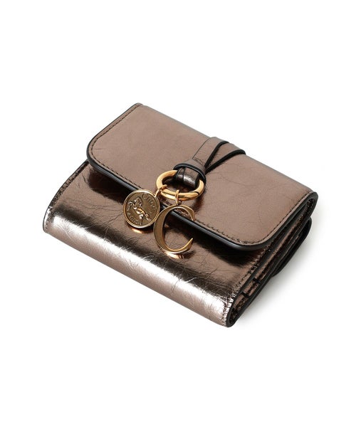 【Chloe(クロエ)】 メタライズドレザー製ALPHABETスモールトリフォールド