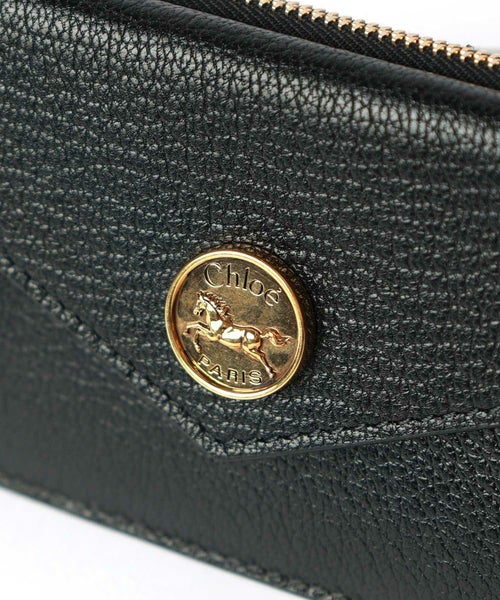 【デザイン】Chloe(クロエ)の財布。グレインゴートスキンを使用したEnvelopeスモール ウォレットは、柔らかな手触りと耐久性を実現し、ジップ付きのメインコンパートメント、コインポケット、カードスロット4つ、フラットポケット1つを備えており、便利で実用的な収納力です。さらに、馬術の世界にインスパイアを受けたゴールドのHorseメダルが、エレガントさを引き立てるポイントに。ジップ&スナップボタン式のクロージャーで、開閉もスムーズかつ安全。コンパクトながらも収納力があり、洗練されたデザインと優れた機能性を兼ね備えた逸品です。