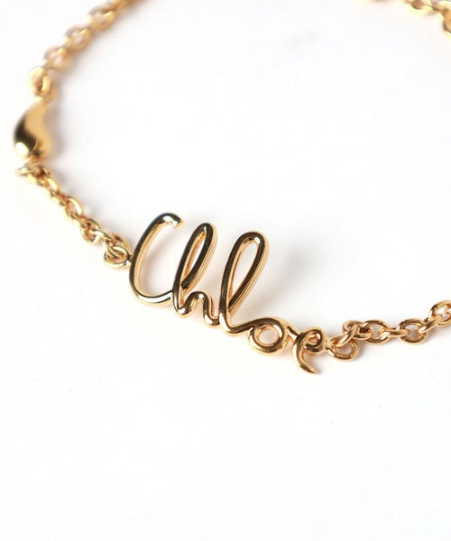 【デザイン】Chloe(クロエ)のブレスレット。ヴィンテージゴールドブラス(真鍮)で作られており、伝統的なチェーンベルトからインスピレーションを得た構造が特徴的です。柔らかな手書き風のChloeロゴがセンターに配されており、チェーンの随所にはChloeの"e"を象徴する装飾が施されており、チェーン全体にアクセントを添えています。長さ調整可能なので、手首のサイズや好みに合わせて調整できます。Chloeらしい洗練された佇まいで、日常のスタイルに上質なエレガンスを与えてくれます。単品で使用するのはもちろん、他アイテムと重ね付けしても美しく調和する魅力的なアイテムです。