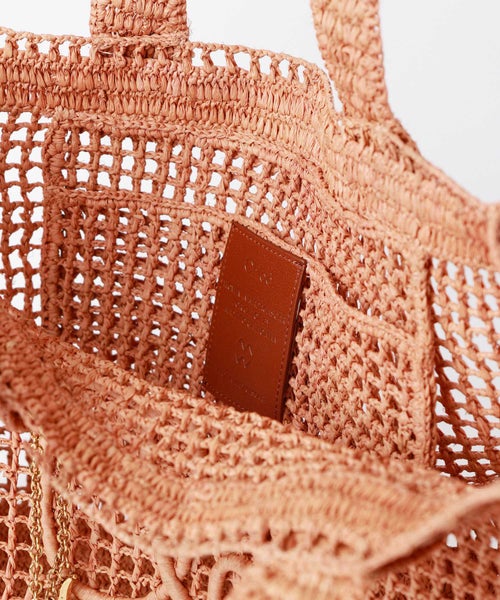 【デザイン】 Chloe(クロエ)のトートバッグ。「Summer Banana」イーストウエストトートバッグは、ハンドクロシェで丁寧に編み上げられたラフィアのナチュラルな風合いと、横長の洗練されたシルエットが魅力の一品。Made For A Womanとのコラボレーションにより、4人の職人が時間をかけて製作されたクラフトマンシップ溢れる仕上がりです。フロントにはメゾンの伝統にインスパイアされた手書きのシグネチャーをあしらい、特別感をプラス。軽やかなラフィア素材に、トリムには耐久性に優れたバッファローレザーを組み合わせることで、ナチュラルさと上質さを兼ね備えています。揺れるチェーンとチャームがエレガントなアクセントとなり、ハンドとショルダーの2WAYでスタイリングが可能。広々としたメインコンパートメントに加え内ポケットも備え、デザイン性と実用性を兼ね備えた、シーズンムードを高めてくれるトートバッグです。