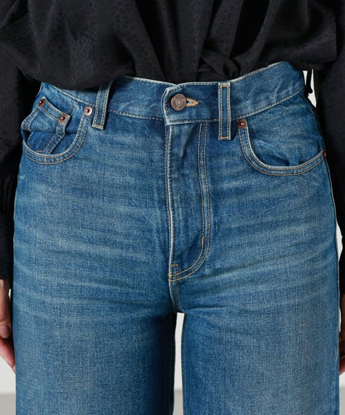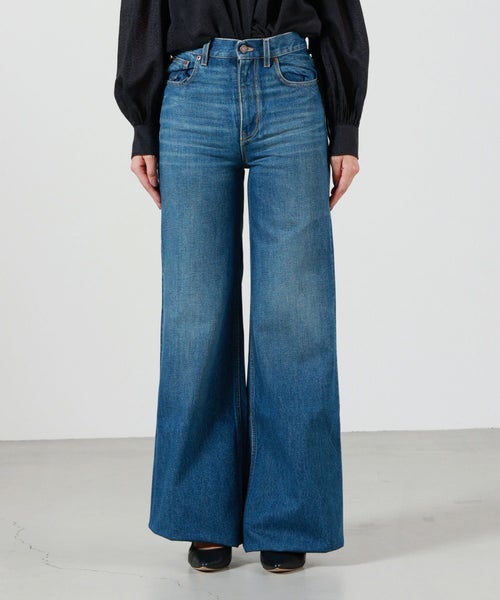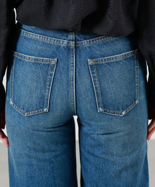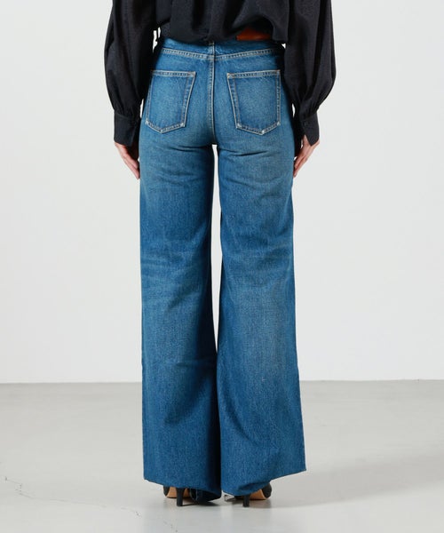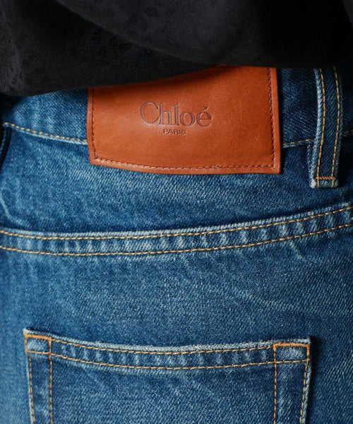 【デザイン】Chloe(クロエ)のデニムパンツ。ハイウエストのワイドレッグシルエットは脚のラインを美しく見せるデザインで、リラックスした雰囲気とエレガンスを兼ね備えています。バックにはChloeのレザーパッチが施され、ブランドのアイコンをさりげなく感じさせます。