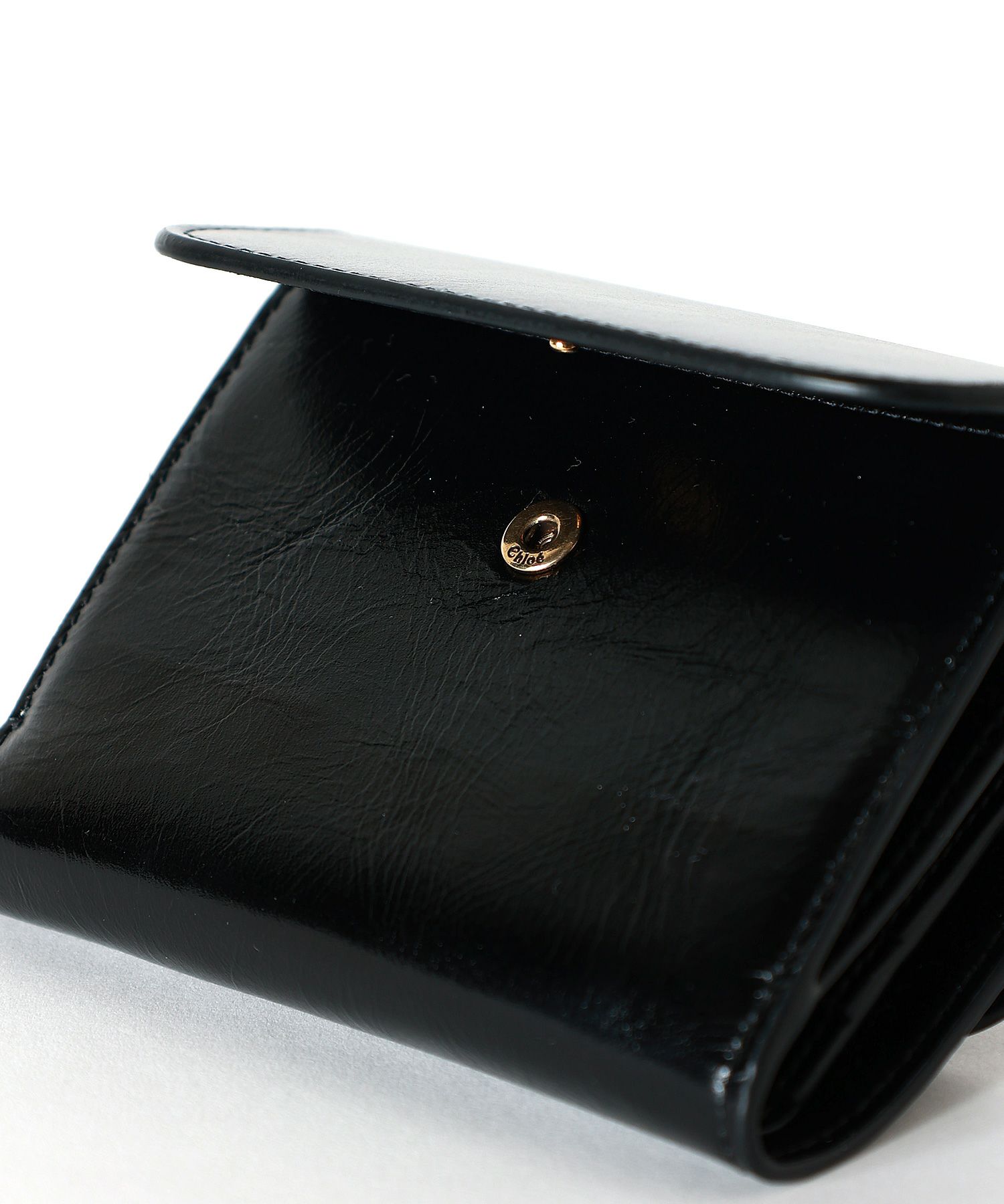 【Chloe(クロエ)】 シャイニーレザー製ALPHABETスモールトリフォールド