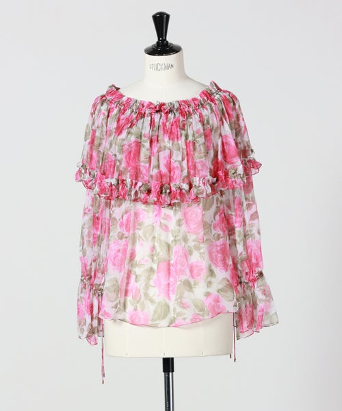 【Chloe(クロエ)】 ラッフルフローラルオフショルダートップス