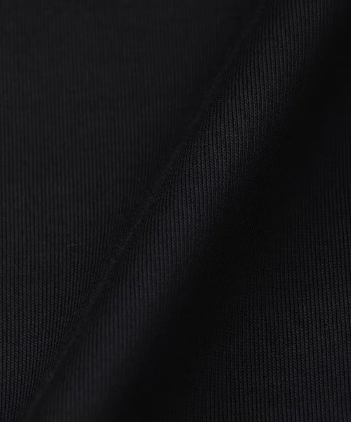 【素材】コットン100%の定番素材「REFINA(リフィナ)」を使用した一着。特殊な技術により、超長綿では表現が難しいほどの適度な厚みとハリ感を持たせており、ヘビーオンスでありながらも、しなやかさと上品な光沢を併せ持つ天竺生地に仕上げられています。肌に触れた際はドライすぎず滑らかで、安心感のあるしっかりとした着心地ながら、見た目には重たさを感じさせないクリーンな印象です。洗濯を繰り返しても型崩れしにくく、日常使いに耐えうる耐久性も魅力です。