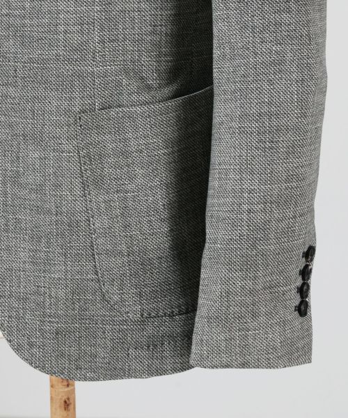 【素材】 綿とポリウレタンの混紡素材を使用し、しなやかな肌触りと適度な伸縮性を両立。また、通気性と快適性を兼ね備えた裏地使いで袖通りが良く、さらっとした肌触りでジャケットの着脱もスムーズに。