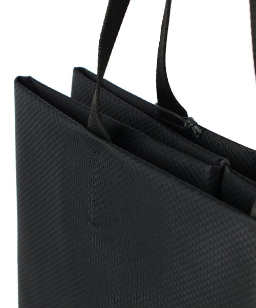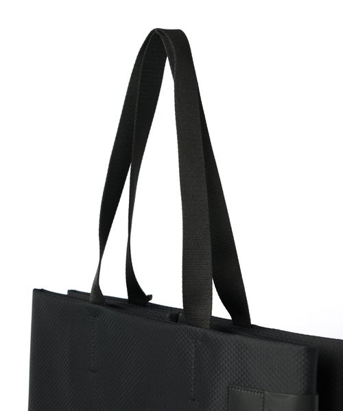 【デザイン】 cote&ciel(コートエシエル)のバッグ。「The TODD」は、1枚の平面を折りたたむことで立体的なボリュームを生み出すという、独自のデザインプロセスから誕生した大型のトートバッグです。本モデルには、軽量でハリのある質感と撥水加工を兼ね備えた新素材「Satellite Blackナイロン」を採用しています。内装は中央で2つのコンパートメントに仕切られており、片側には小物の整理に便利なファスナー付きポケットを備えています。また、実用的なコードとカラビナのアタッチメントにより鍵を固定でき、バッグの外側からアクセスできるプルタブを引くだけで、スムーズに鍵を取り出すことが可能です。