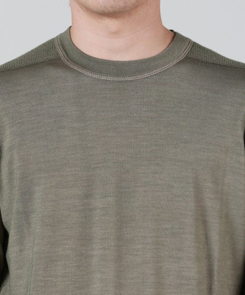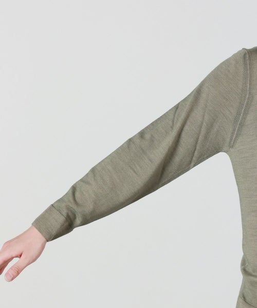 【素材】 ハイゲージのメリノウールニットを使用。羽目らかな肌触りでチクチク感のない素材です。