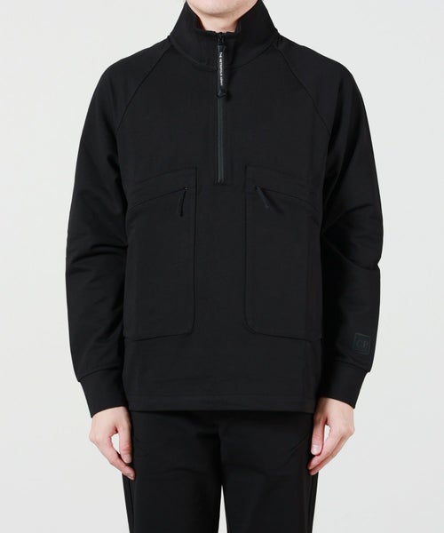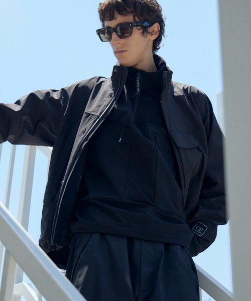 【デザイン】 C.P. Company(シーピーカンパニー)のハイネック。ボクシーなシルエットでラグランスリーブが肩周りに丸みを演出します。サイドポケットが特徴的な配置となっており、裾はスピンドル使用。シルエットを調整して着用できます。