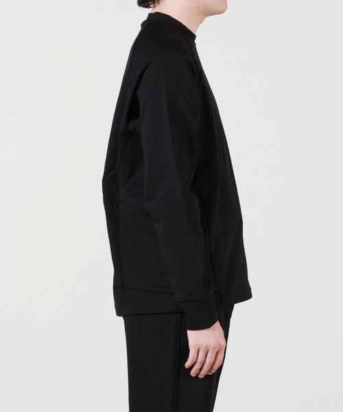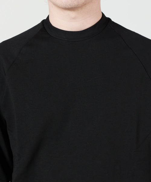 【素材】 程よい肉感のコットンジャージーを使用。微光沢がある素材です。カットソーとスウェットの丁度中間の厚みです。