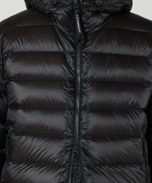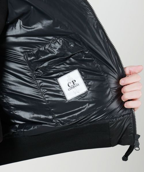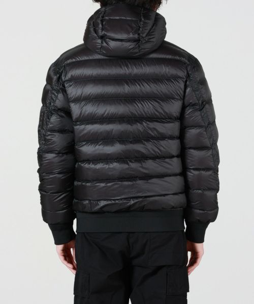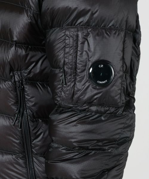 【デザイン】 C.P. Company(シーピーカンパニー)のフーデットダウンジャケット。ボクシーなシルエットで、裾はリブ使用。左袖には C.P.カンパニーのアイコンであるレンズが配置されています。ダイレクトダウンインジェクション製法で作られており、ソフトな着心地地高い保温性が特徴です。