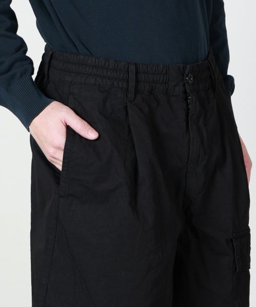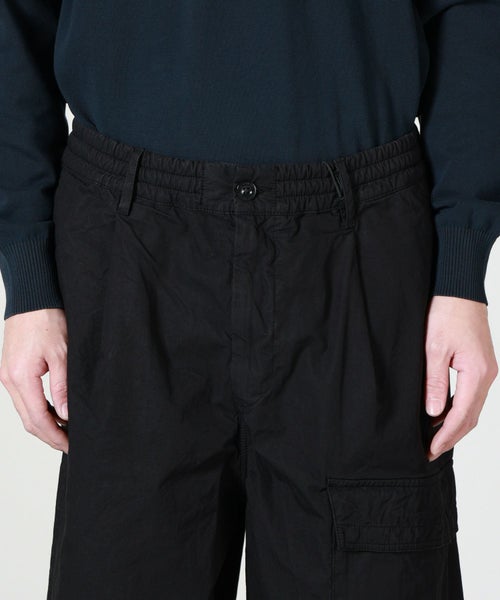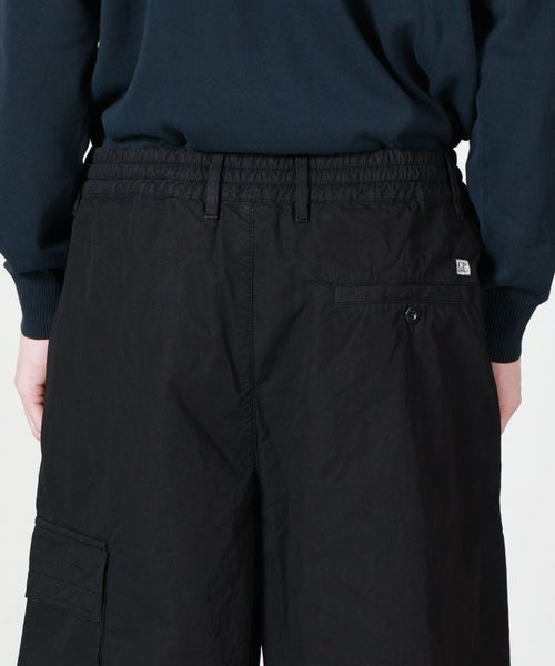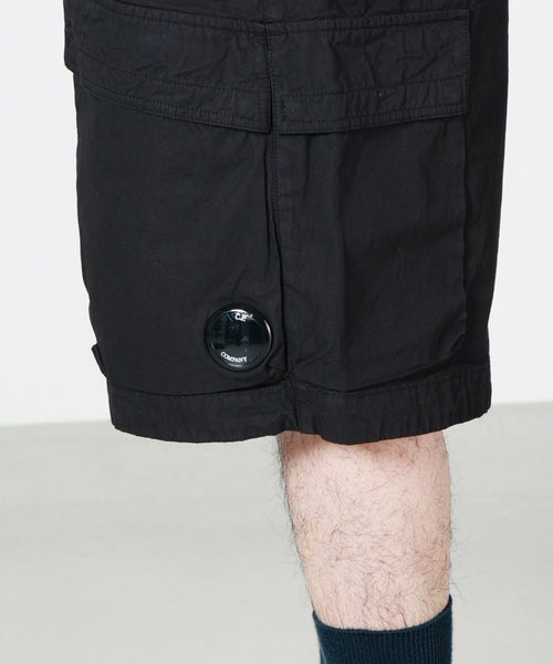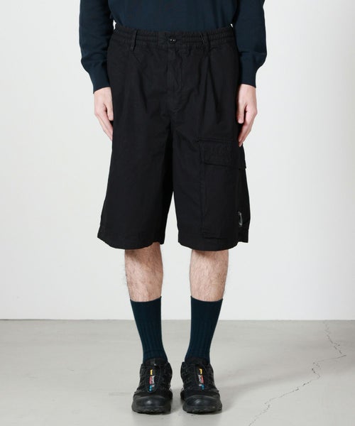 【デザイン】C.P. COMPANNY(シーピーカンパニー)のショートパンツ。ボクシーシルエットのゆったりとしたフォルムが、リラックス感あるスタイルを演出する機能美と現代的なムードを融合したデザインです。ウエストはゴム+ボタン&ジップ仕様でフィット感と着脱のしやすさを両立。サイドに配された複数のポケットが実用性を高め、ブランドを象徴する「レンズ」ディテールをあしらったポケットがC.P. Company らしい遊び心と機能性を演出。大人のカジュアルなシーンにもマッチして、スタイルにさりげない個性をプラスするデイリーユースに最適なショーツです。