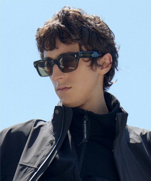 音楽とカルチャーからインスピレーションを得たデザインで、1977年にロンドンのThe Rock Gardenでパフォーマンスを行ったパティ・スミスの影響が込められています。ヴィンテージのアーカイブから引用されたクラシックな矩形フレームは、アメリカンアセテートを思わせる上品で大胆な佇まいが魅力。縦方向に並ぶオイスターピンや新しい「フェンダー」テンプル、そしてフレットボードのようなテンプルコアが、独自性を高めています。シルエットはゆったりとしたプロポーションで、存在感を放ちながらも自然に顔になじみます。