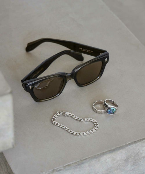 熟練職人の手作業によるイタリア製アセテート素材を採用。適度な厚みと逆方向の軽量化加工によって、見た目の重厚感と快適な着用感を両立しました。滑らかな触り心地と高級感あふれる光沢が、洗練されたスタイルを引き立てます。また、耐久性と安定性に優れた構造で、長時間使用してもストレスを感じさせない設計です。