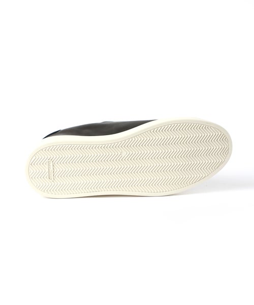 【素材】アッパーには山羊革と牛革を組み合わせた上質なイタリアンレザーを使用。山羊革はしなやかで軽く、足に吸い付くようなフィット感が特徴で、牛革は程よいハリと耐久性を兼ね備え、全体のフォルムを美しく保ちます。表面は滑らかで自然な艶があり、上品でクリーンな印象に。履き込むほどに足に馴染み、革ならではの経年変化も楽しめます。ソールにはゴム素材を採用しており、クッション性とグリップ力があり歩行時の安定感をサポート。