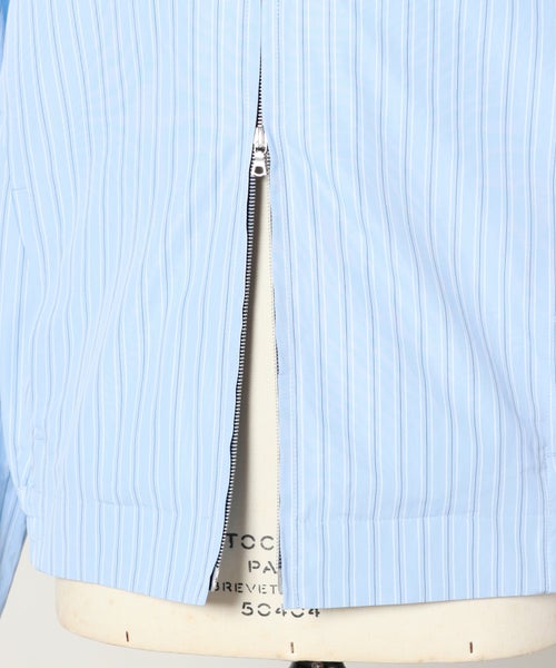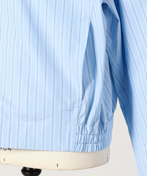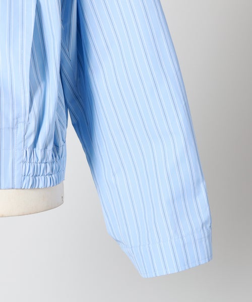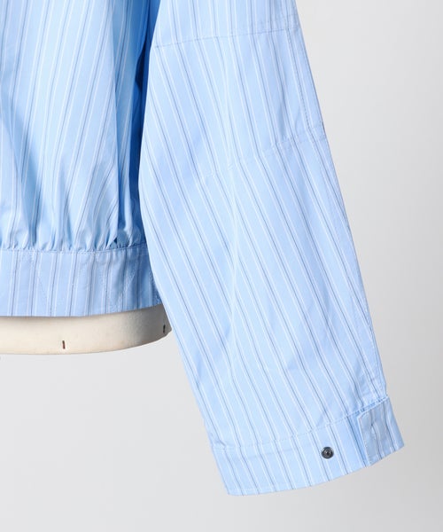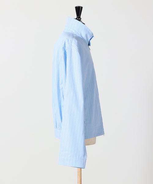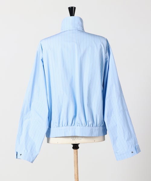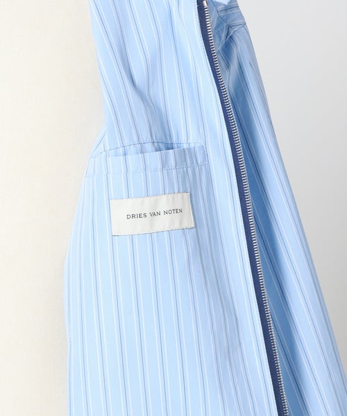 【デザイン】 DRIES VAN NOTEN(ドリス ヴァン ノッテン)のジャケット。フロントはすっきりとしたジップ仕様。無駄を削ぎ落としたミニマルなデザインが、ストライプ柄の爽やかさを引き立てます。 ややゆとりのあるシルエットに、立ち上がりのあるネックラインがアクセント。裾にはゴムを配し、自然な丸みとコンパクトなバランスを演出します。袖は程よくボリュームを持たせることで、シンプルながらも立体感のある仕上がりに。 軽やかなブルーストライプがスタイリングに清涼感をプラスし、カジュアルにもきれいめにも着回せる一着です。