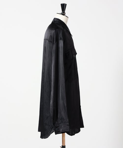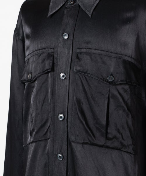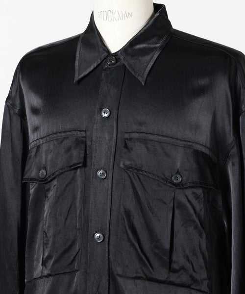 【デザイン】 DRIES VAN NOTEN(ドリス ヴァン ノッテン)のシャツ。胸元に配された大きなフラップポケットが印象的なアイテム。ミリタリーライクなディテールをベースにしながらも、落ち感のあるシルエットで上品に仕上げられています。程よくゆとりを持たせたシルエットと、ヒップにかかる着丈がリラックス感を演出。一枚でさらりと着るのはもちろん、羽織としても活躍する汎用性の高いデザインです。ブラックのカラーリングがモードな雰囲気を引き立て、スタイリングを引き締めます。