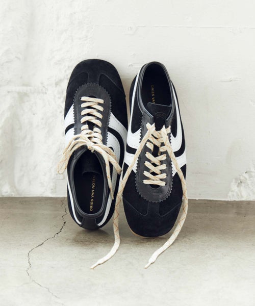 【デザイン】 DRIES VAN NOTEN(ドリス ヴァン ノッテン)のスニーカー。1970年代のマラソンシーンから着想を得たデザインを、上質なスエードで表現しています。ナッパレザーを組み合わせたアッパーと、ブランドの個性を感じさせる薄型のシグネチャーソールが特徴。ヴィンテージムードと洗練されたモダンさを兼ね備えた一足です。