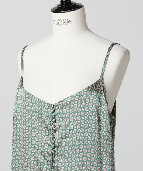 【デザイン】DRIES VAN NOTEN(ドリス ヴァン ノッテン)のワンピース。華奢なキャミソールストラップとフロントの飾りボタンが女性らしい印象を引き立てる一枚。落ち感のあるサテンシルク素材が体に沿う柔らかなシルエットを作り、軽やかで上品な着こなしが可能です。タイ・プリントとアーガイル柄のネクタイプリントがアクセントになり、モード感とクラシックな雰囲気を兼ね備えています。