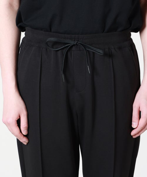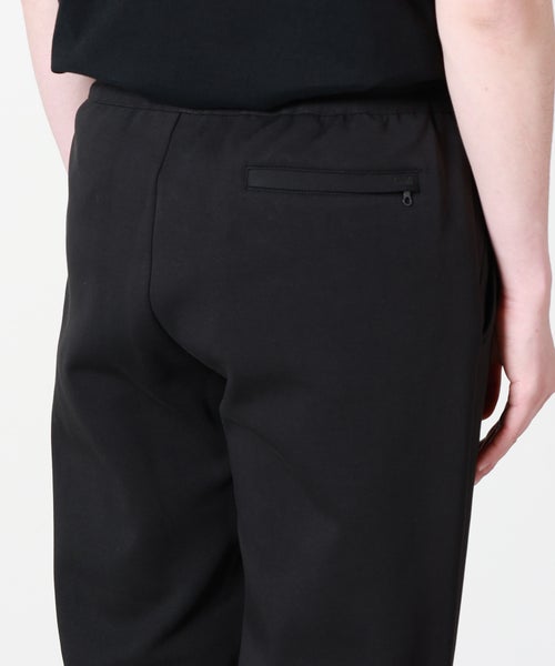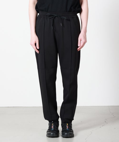 【デザイン】 DUNO(デュノ)のリブパンツ。スポーティーな雰囲気と都会的な上品さを持っているイージーパンツです。デュノでは定番的に使われるコットンジャージーのキレイめな生地を使用し、特徴的なのは前面に施されたクリースラインです。近年注目度の高い、永久クリースのジャージーパンツになっており、楽に上品なスタイルが決まります。シルエットも程良くリラックス感があるため、合わせられるトップスの幅も広く、モダンな印象で着用して頂ける、バランスの取れた一本に仕上がっております。