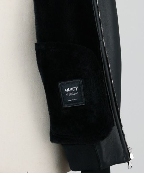 【デザイン】EMMETI(エンメティ)のジャケット。クラシックなミリタリーボンバージャケットの男らしさをベースに、EMMETIのフィルターを通して上品かつラグジュアリーに昇華させた、希少なムートンジャケットです。無駄のないシルエットと上質な素材使いが相まって、洗練された大人の雰囲気を漂わせます。リブ使いで軽快さを加えつつ、ラグジュアリーでありながらも日常使いしやすい汎用性の高さが魅力。