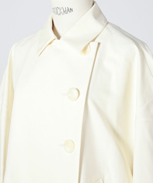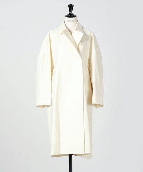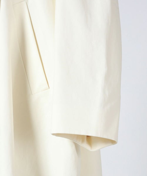 【デザイン】 ENFOLD(エンフォルド)のボリュームのあるフレアシルエットのステンカラーコート。ミニマルなディテールで仕上げられているため、どんなスタイルにも自然に馴染む汎用性の高さが魅力的なアイテムです。また、寒い時期には中に厚手のアイテムを重ね着でき、春先まで活躍する汎用性の高い一着です。