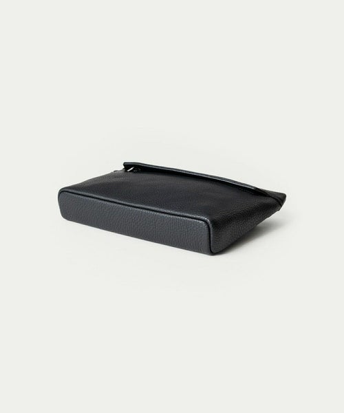 【デザイン】 ETIAM(エティアム)×EMMETII(エンメティ)のポーチ。イタリアのラグジュアリーアウターブランド『EMMETI(エンメティ)』と、『ETiAM』がコラボレーションをすることで、エレガントなシルエットを実現したポーチ。レザーを中心にファーやファブリックなどの高級素材を巧みに組み合わせ、程よいラグジュアリー感を演出する『EMMETI』のラインナップは、素材使いだけでなく人間の体躯を熟知した絶妙なフィッティングも大きな魅力になっています。 スポーティーでありながらエレガンスを忘れない “エレガンテ・スポルティーヴォ”を、コンセプトにしているブランドのライダースジャケットに合う、クラッチバッグほど堅苦しくなく、一般的なポーチほど簡易的すぎない、洗練されたカジュアルなアイテムへと昇華。シボ感がスタイリッシュな「シュリンクレザー」を駆使し、全面&側面・背面&底面を一枚革で繋げることで、ソフトで丸みを帯びたフォルムへと導いています。レザーの裏面に弾力のある芯材を用いることで、柔らかいながらもハリがあり、型崩れもしにくく、キレイな状態を長く保てる工夫をしています。 スマートフォンをしっかりと入れられる前面のファスナーポケットは、比翼仕立てであえてイタリア製ファスナーを隠しながら、ブラックニッケル加工を施したEMMETI刻印入りの引手金具がちらっと見える洒落感も。YKKエクセラWのファスナー開閉式で、長財布を収納できる背面のメインポケットのETiAMオリジナル真鍮金具にも、ブラックニッケルメッキ加工を施し、前面と同じくレザーの色味と合わせた、オールブラックによるシックな色合いも魅力。
